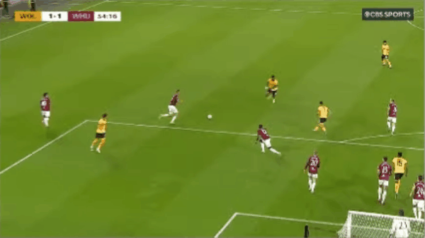50’彼得斯传中,绍切克门前头槌攻门命中,西汉姆联1-1狼队
