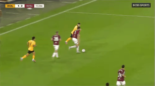 43’黄喜灿主罚点球中柱,戈麦斯补射破门,狼队1-0西汉姆联